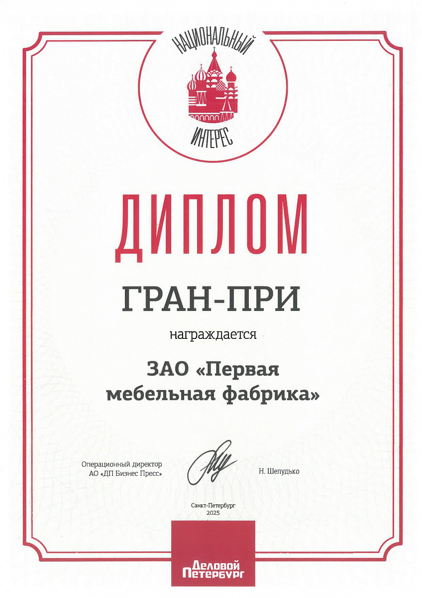 Диплом «Бренд года» от издания «Деловой Петербург».