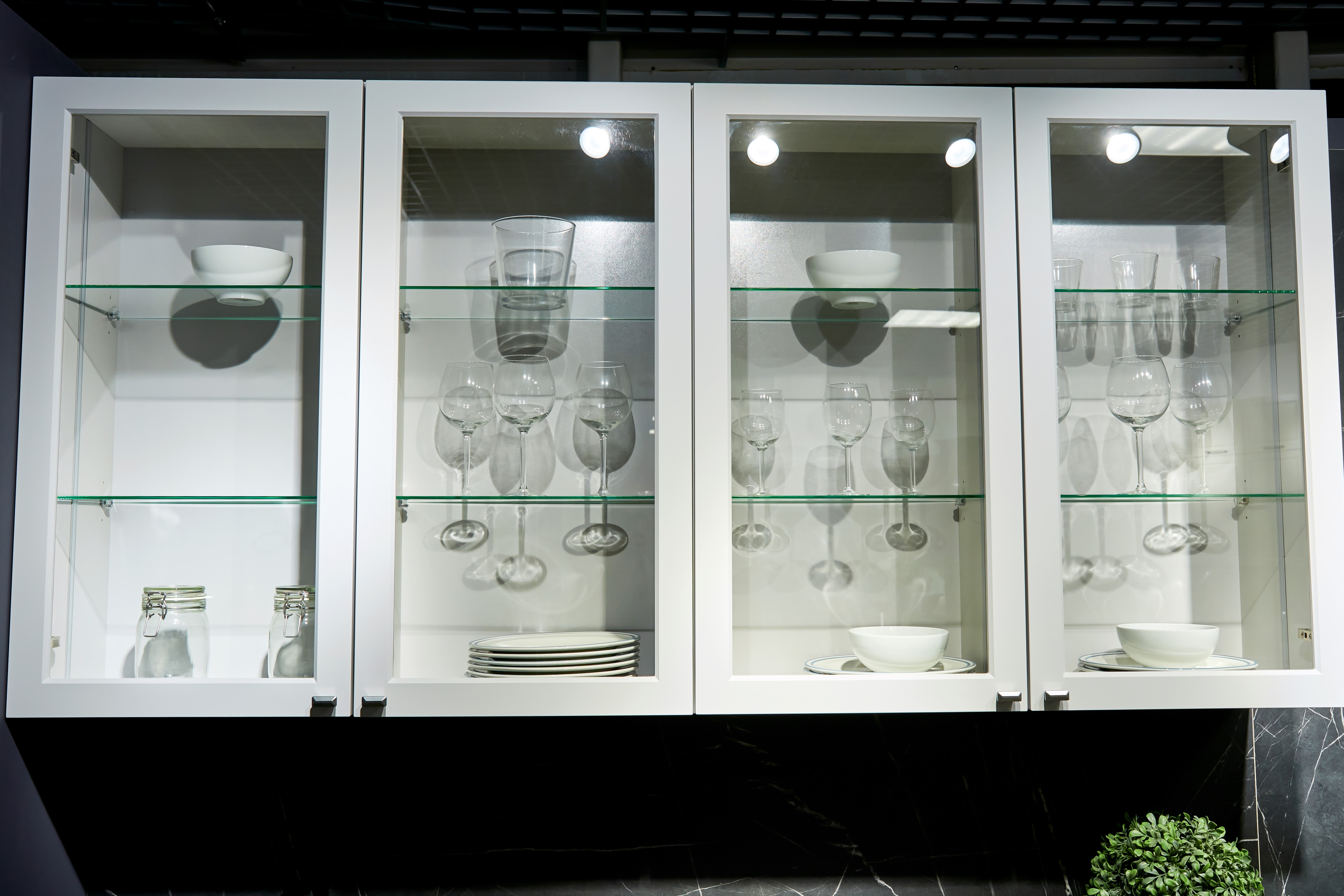 Модель ФРЕСКО имеет фасады со стекломФасад со стеклом: рамочный фасад со стеклянной вставкой или витражом, в том числе с декоративным переплетом. Подробнее для создания красивых неоклассических витрин. Для интерьеров в стиле ар-деко и лофт рекомендуем сочетать фасады модели с фасадами со стеклом в алюминиевой рамке ГАРДА.