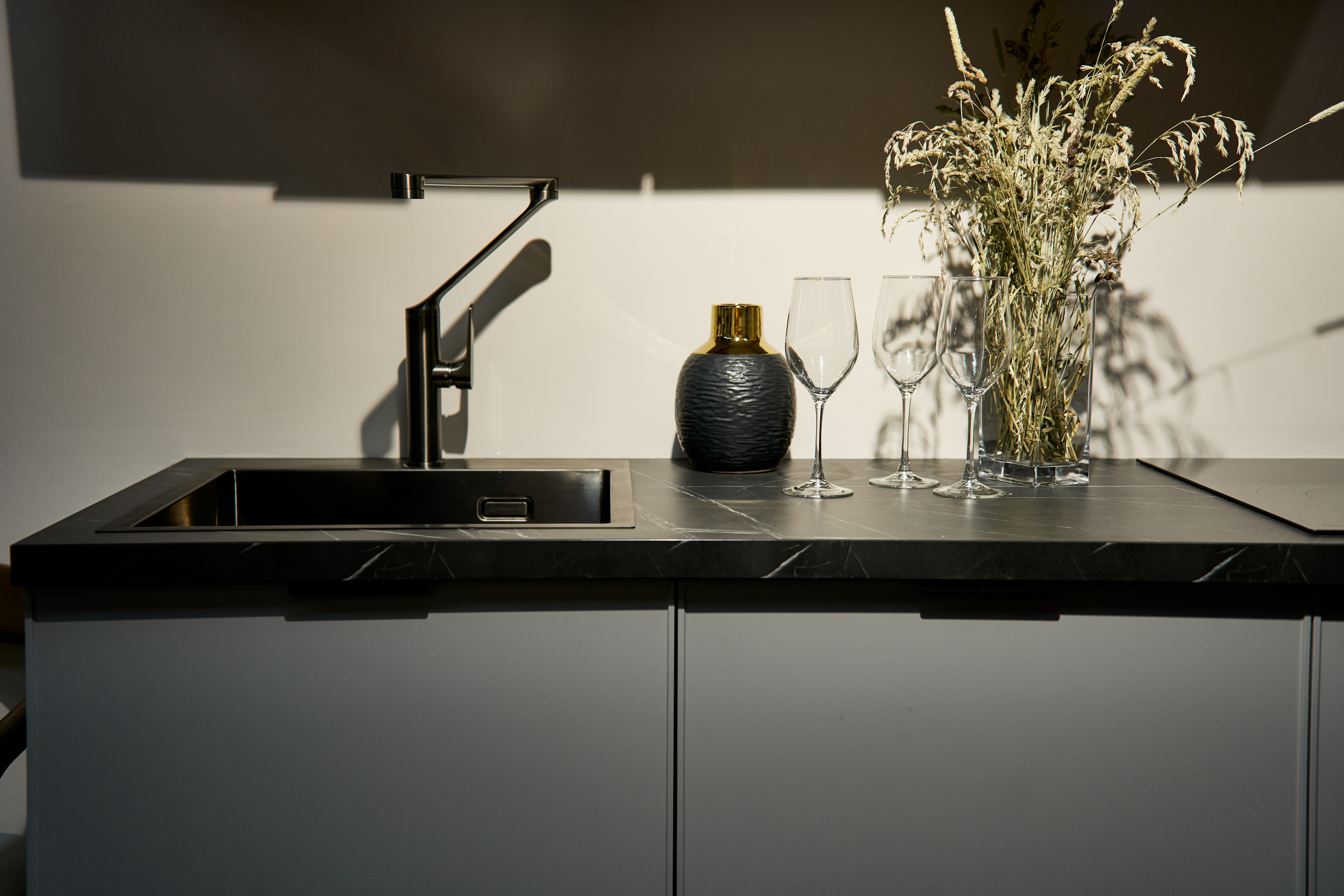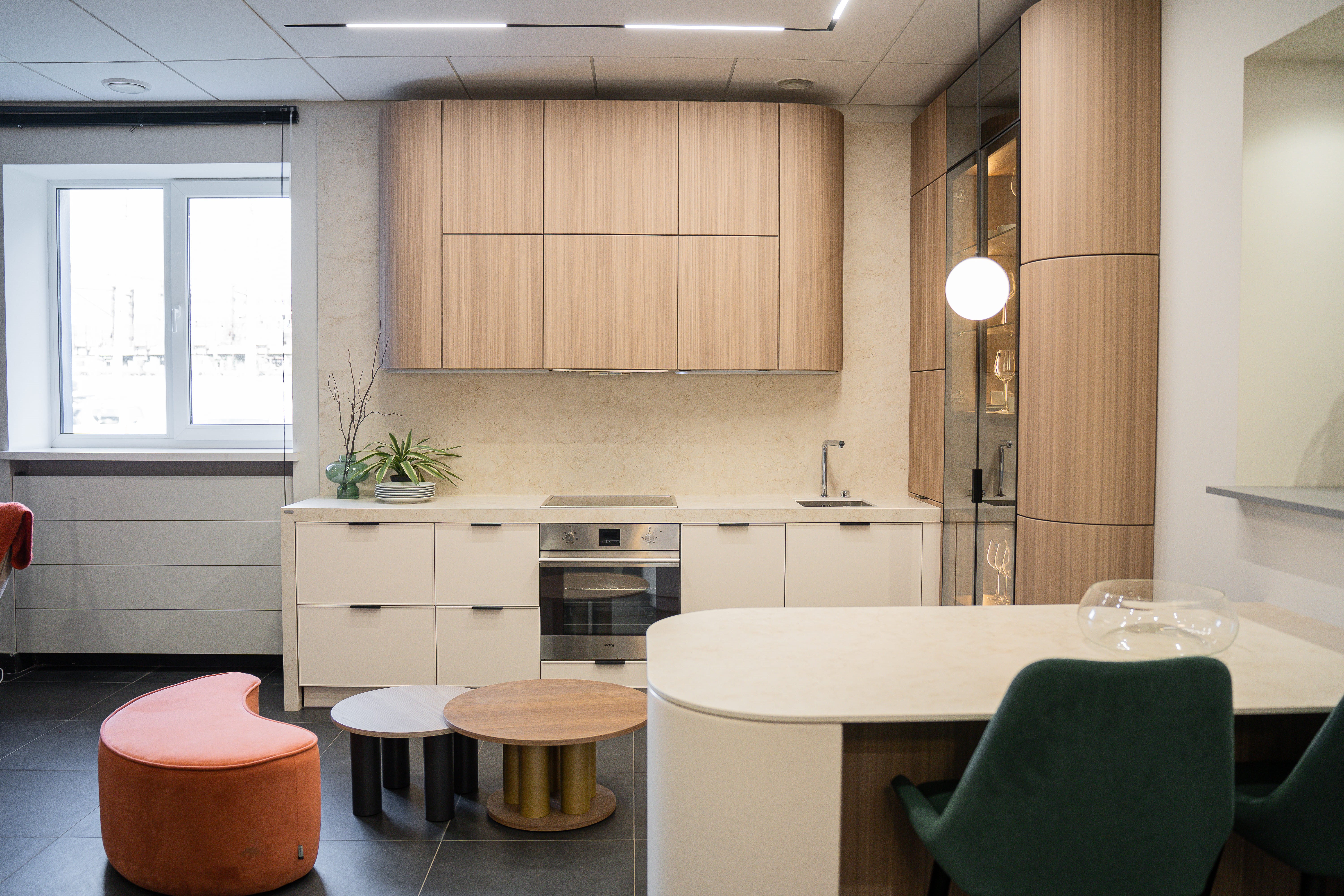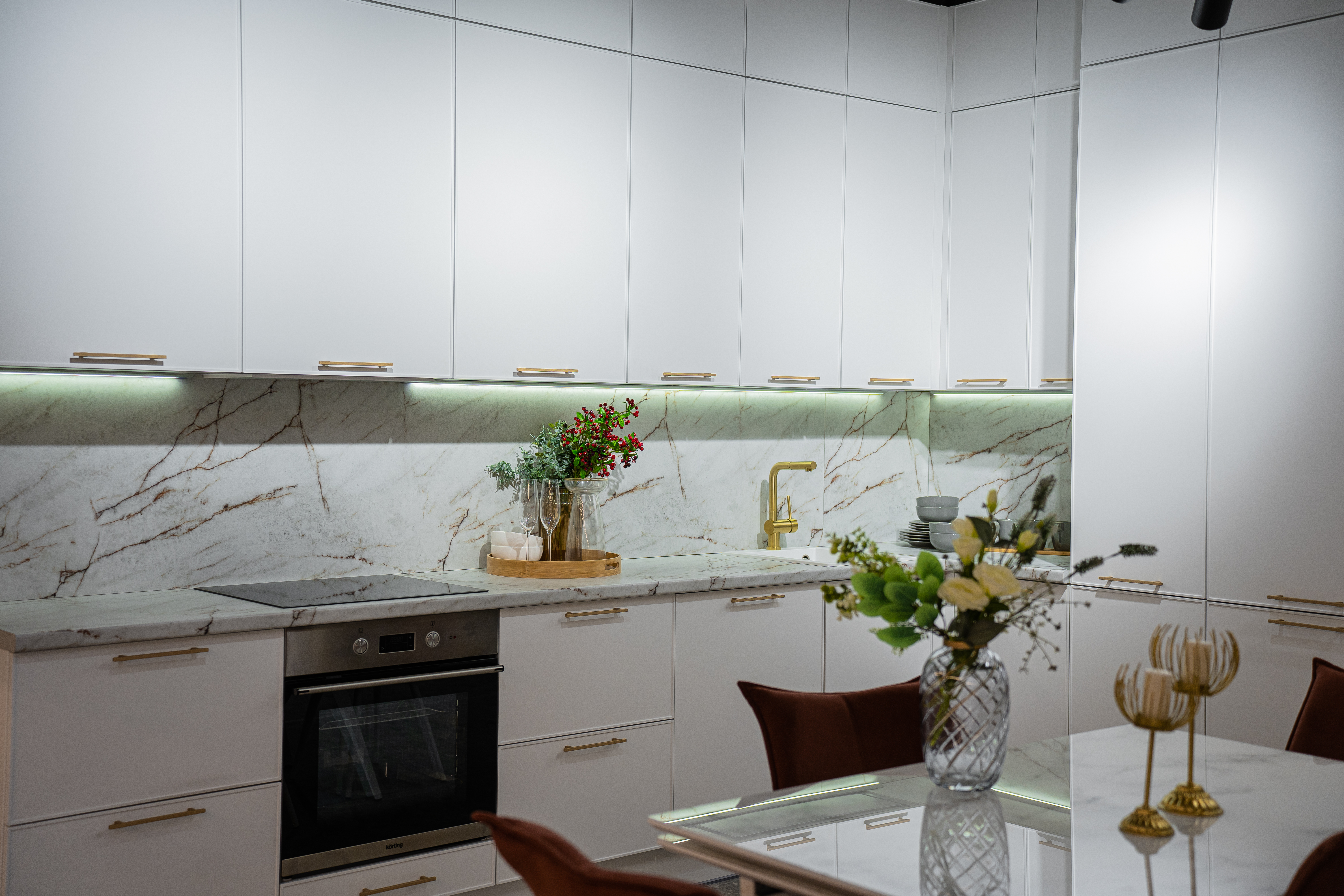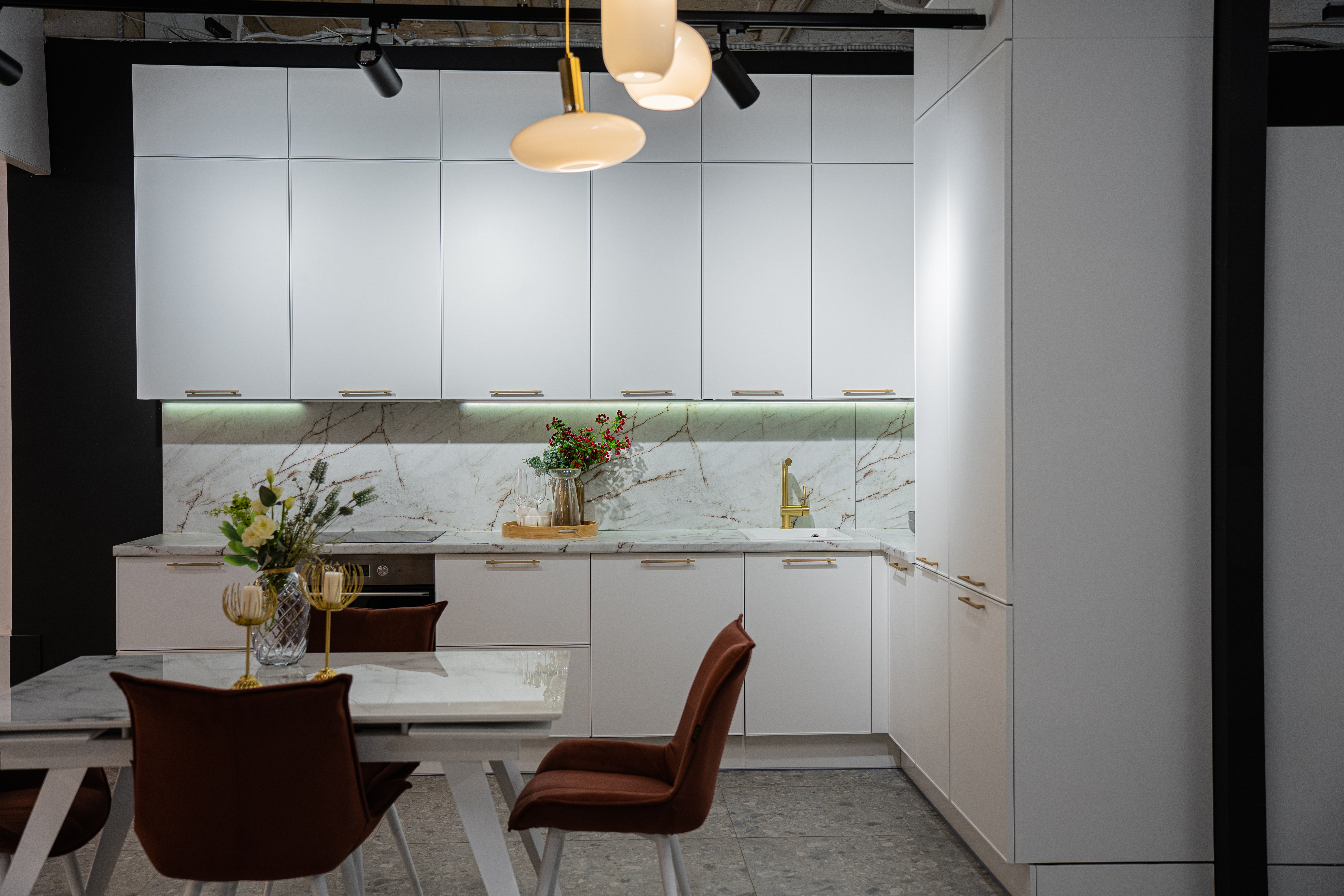 Бытовая техника, мойки и смесители, столешницы и стеновые панели, системы хранения — закажите вместе с кухней.