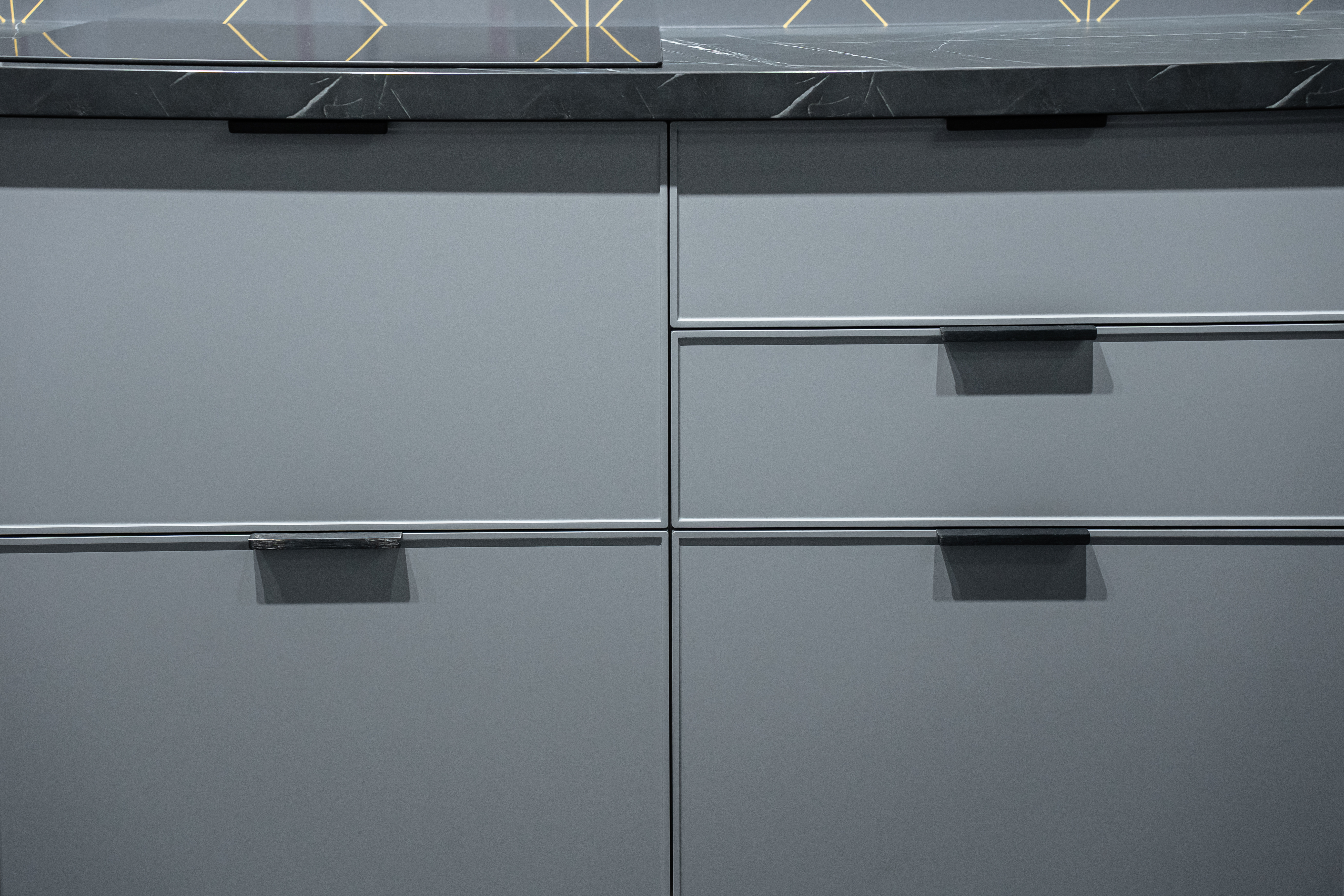 Кухня ЛАЙНЭМАЛЬ изготавливается из экологически безопасного, прочного ЛМДФ марки Egger. Фасады покрываются полуматовой эмалью.