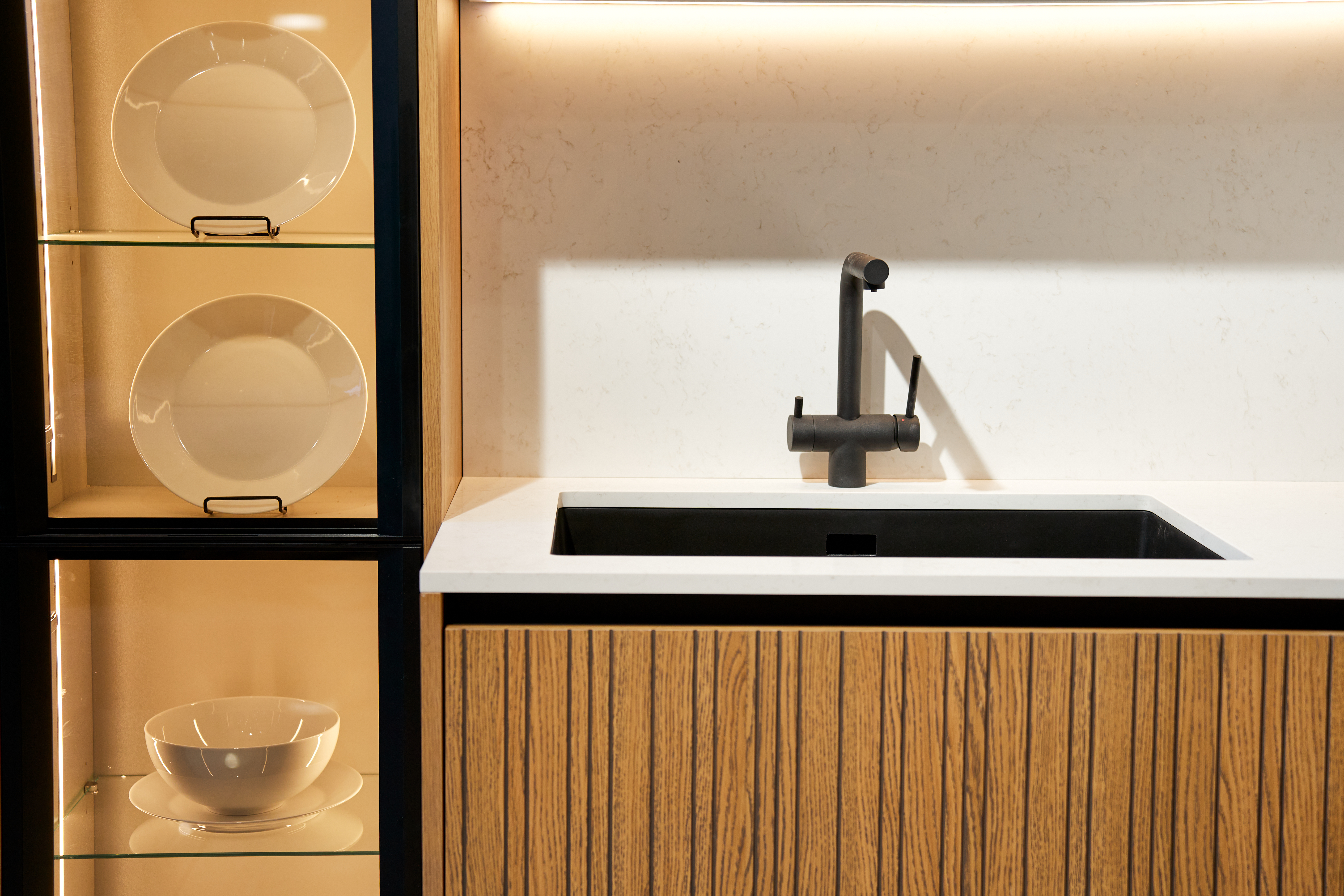 Бытовая техника, мойки и смесители, столешницы и стеновые панели, системы хранения — закажите вместе с кухней.