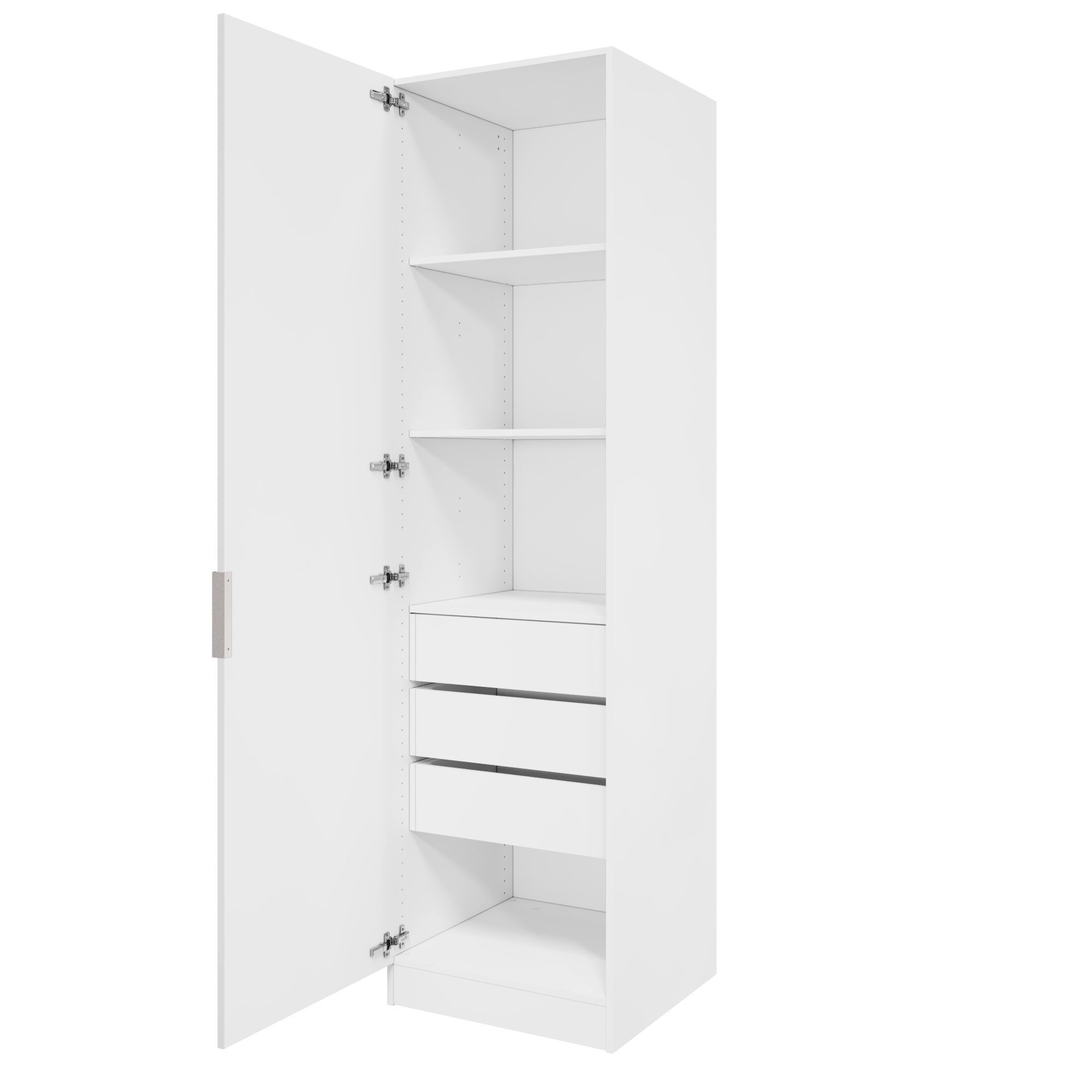 В комплект шкафа включены крепеж для сборки, петли для навешивания распашной двери, ручка, функциональное наполнение.