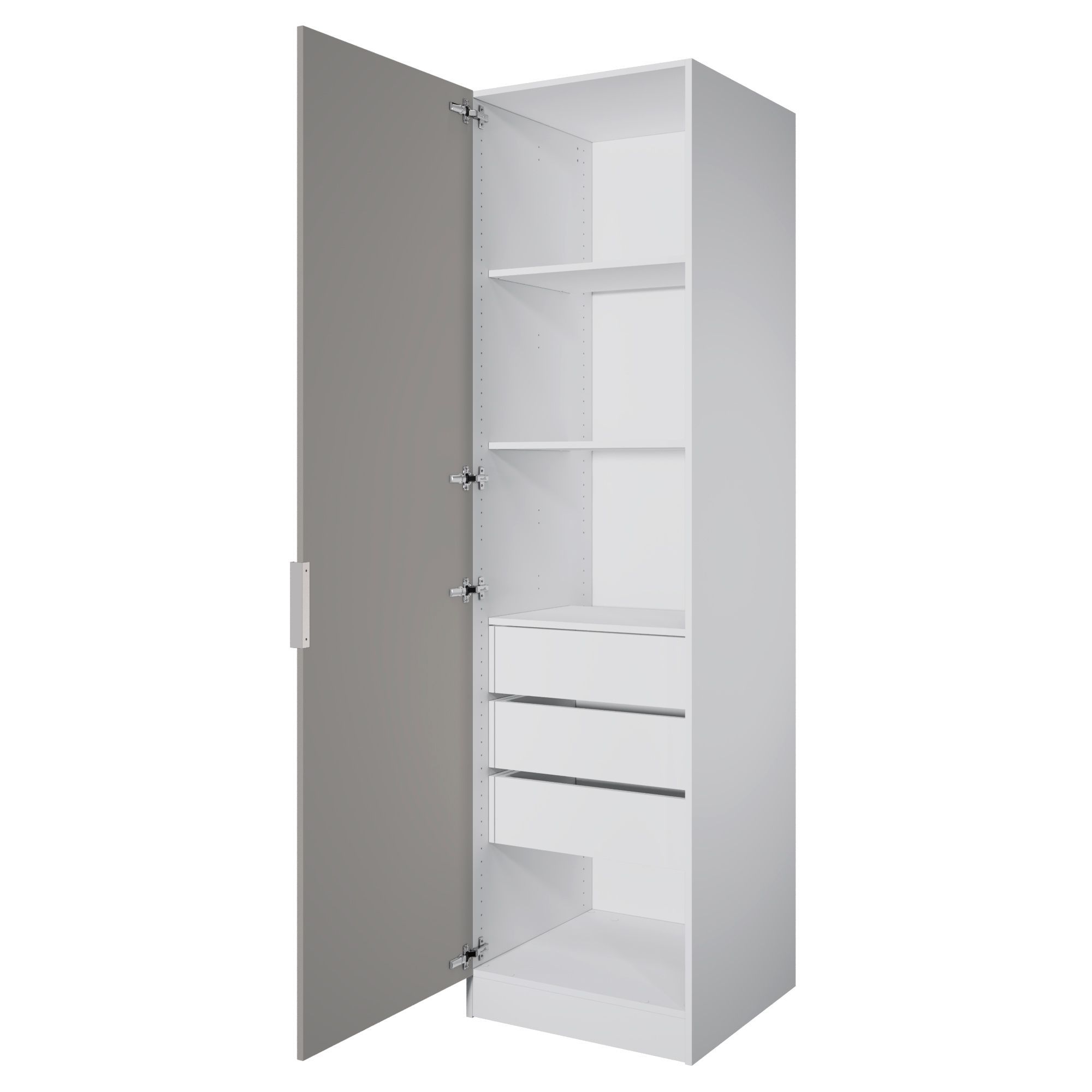 В комплект шкафа включены крепеж для сборки, петли для навешивания распашной двери, ручка, функциональное наполнение.