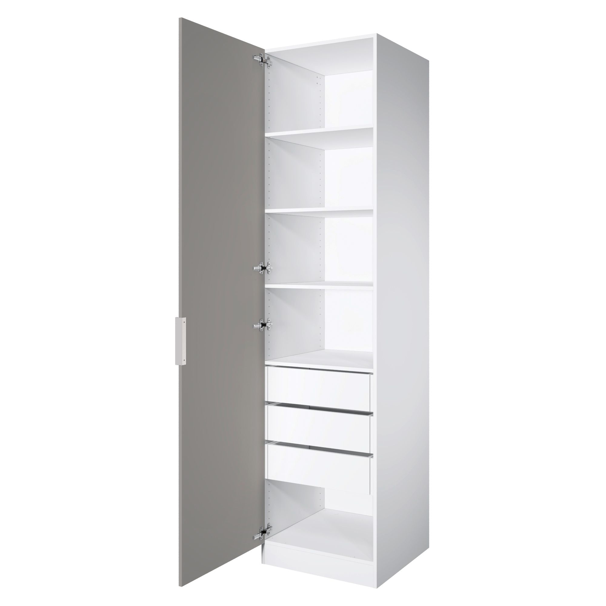 В комплект шкафа включены крепеж для сборки, петли для навешивания распашной двери, ручка, функциональное наполнение.