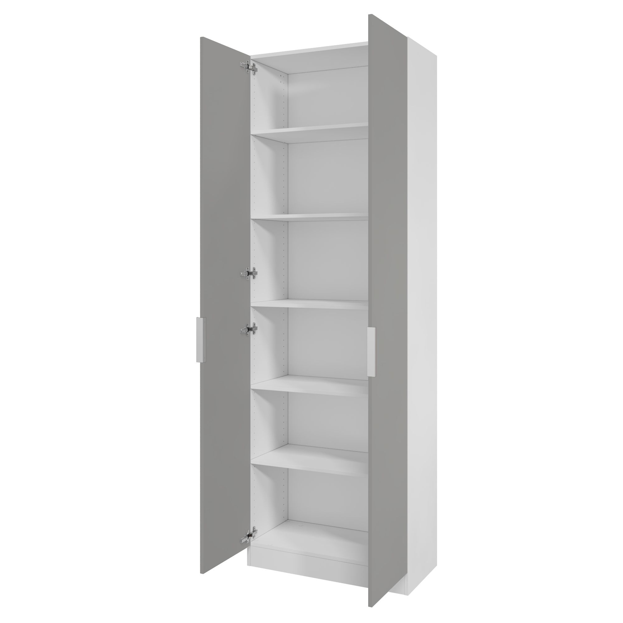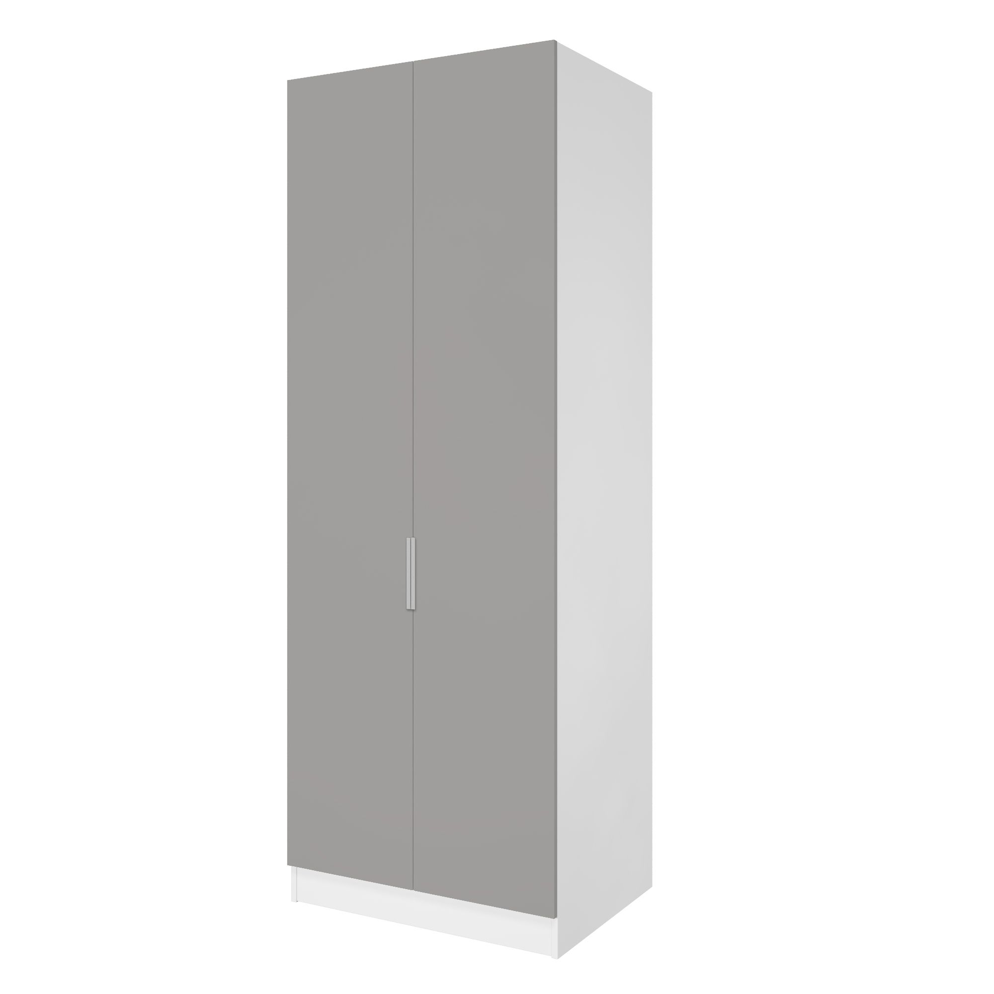 Корпус шкафа выполнен в цвете "Белый перламутр" - чистый оттенок белого. Легко сочетается с любыми декорами. Двери шкафа выполнены в цвете "Шиншилла серая" - легкий, нейтральный серый декор.