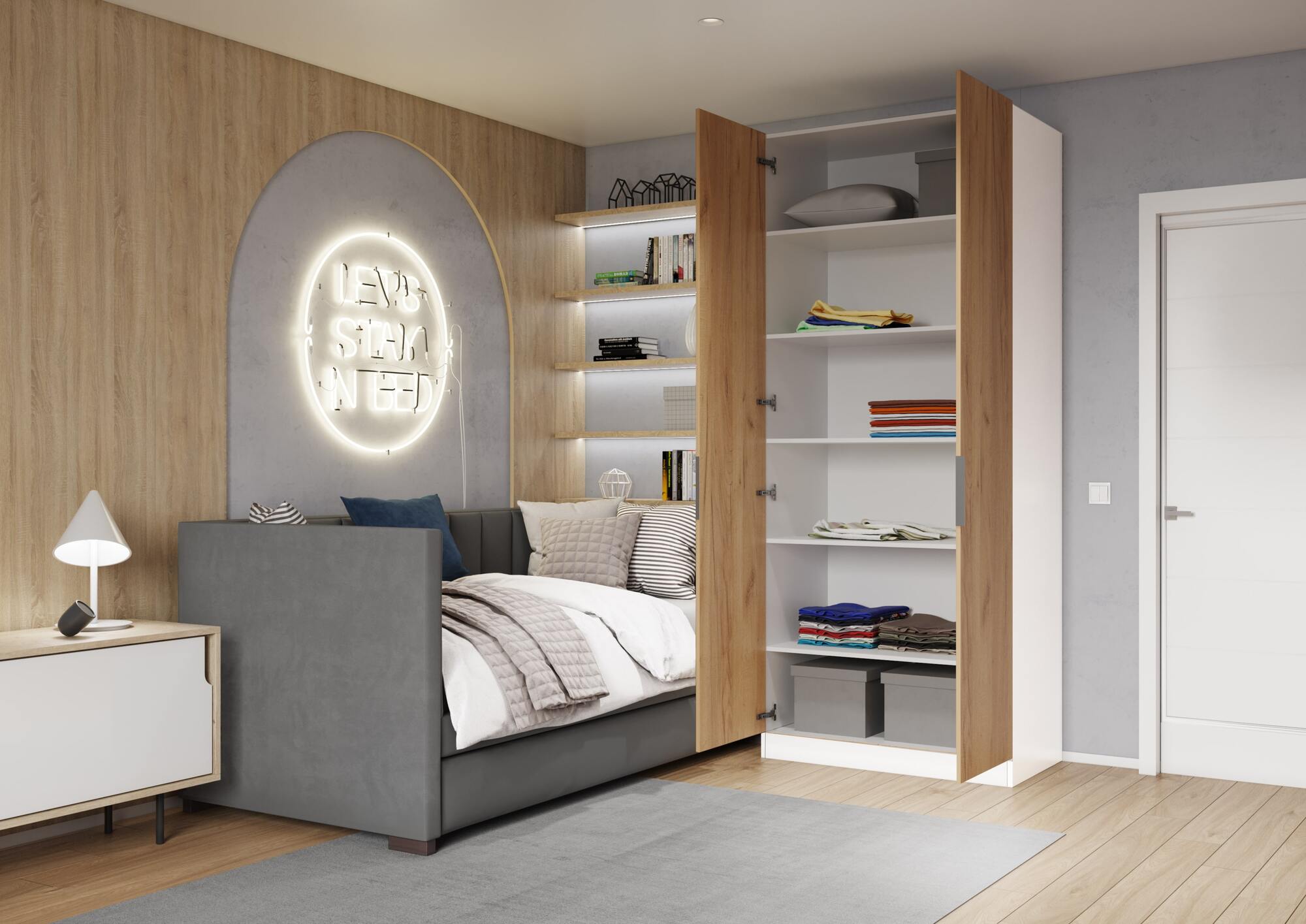 Актуальные декоры в эко-стиле, гармоничная фурнитура и невидимая сборка на эксцентрики позволяют шкафам ЛАЙТ легко вписаться в любой современный интерьер.
