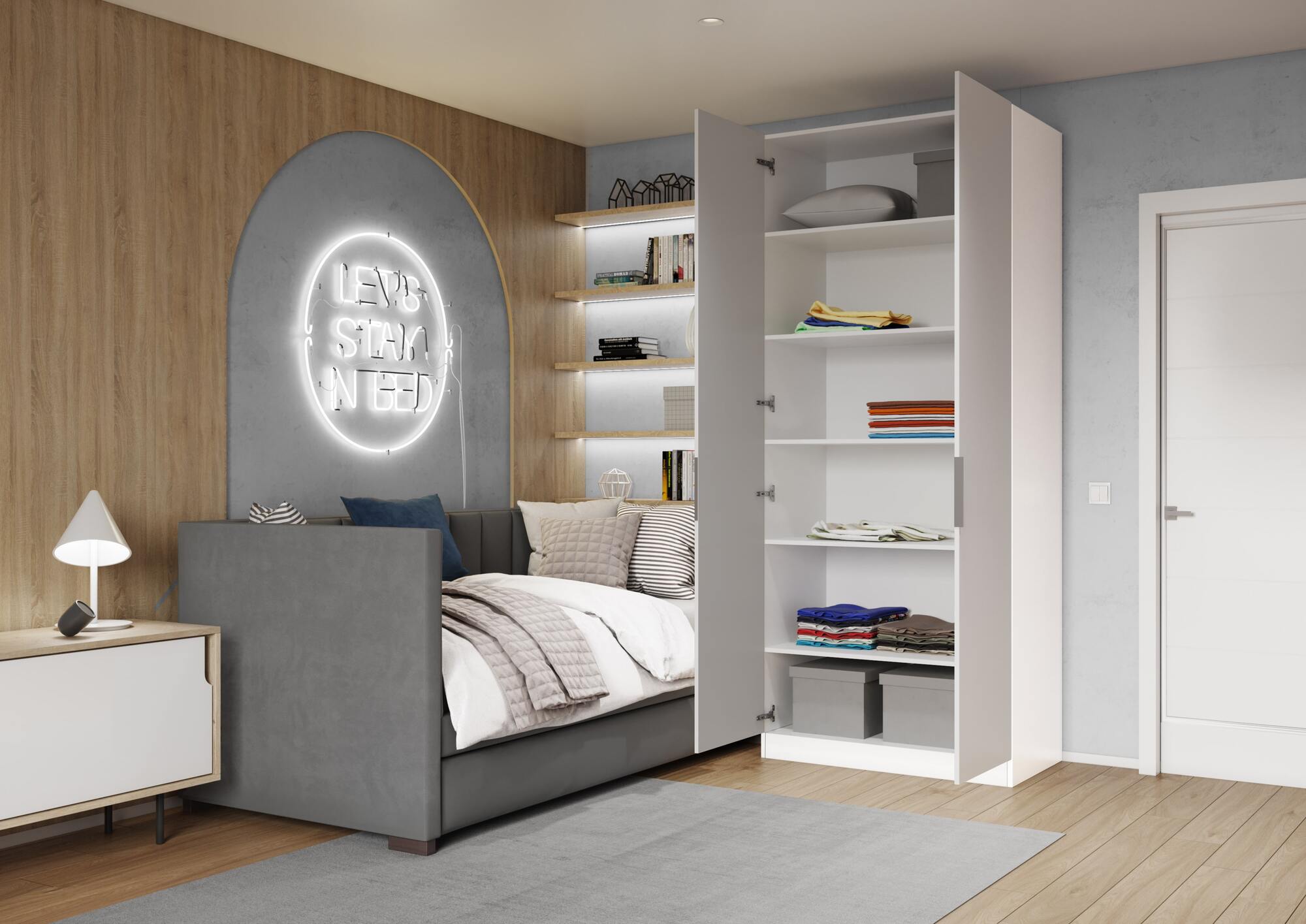 Актуальные декоры в эко-стиле, гармоничная фурнитура и невидимая сборка на эксцентрики позволяют шкафам ЛАЙТ легко вписаться в любой современный интерьер.