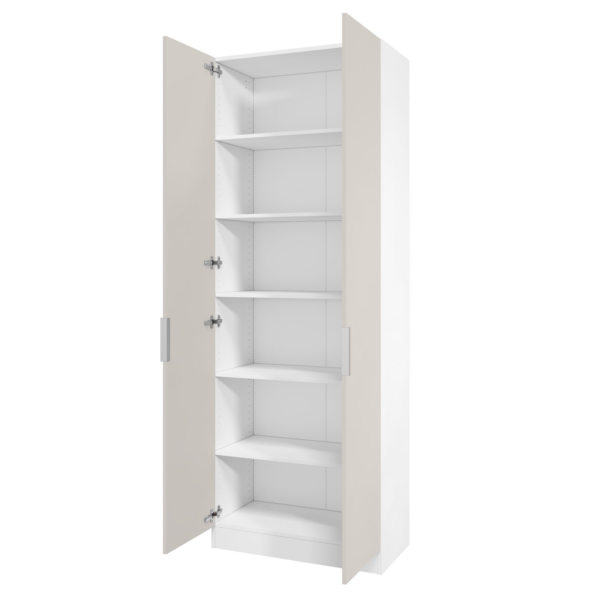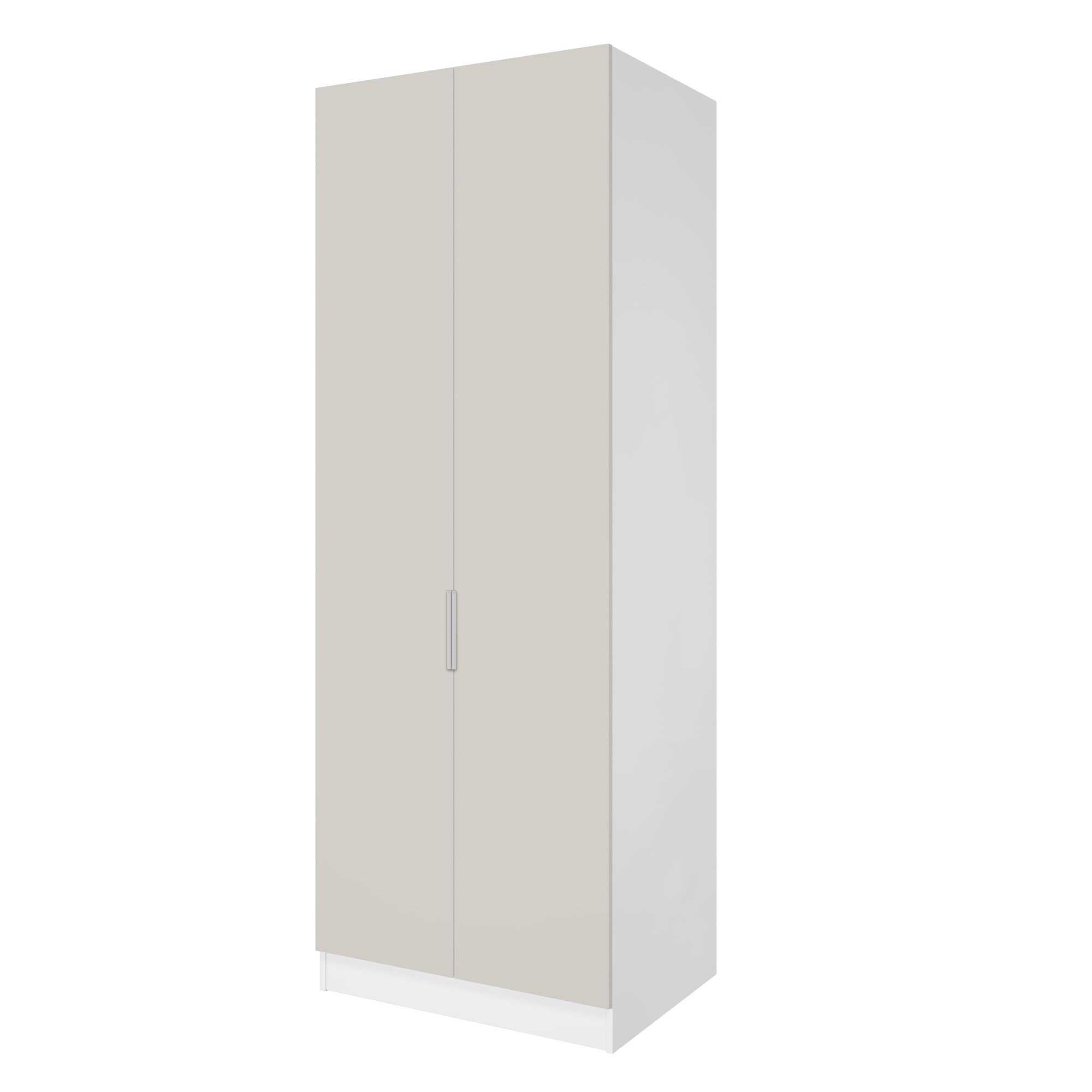 Корпус шкафа выполнен в цвете "Белый перламутр" - чистый оттенок белого. Легко сочетается с любыми декорами. Двери шкафа выполнены в цвете "Кашемир" - актуальный оттенок серого с легким розовым подтоном.