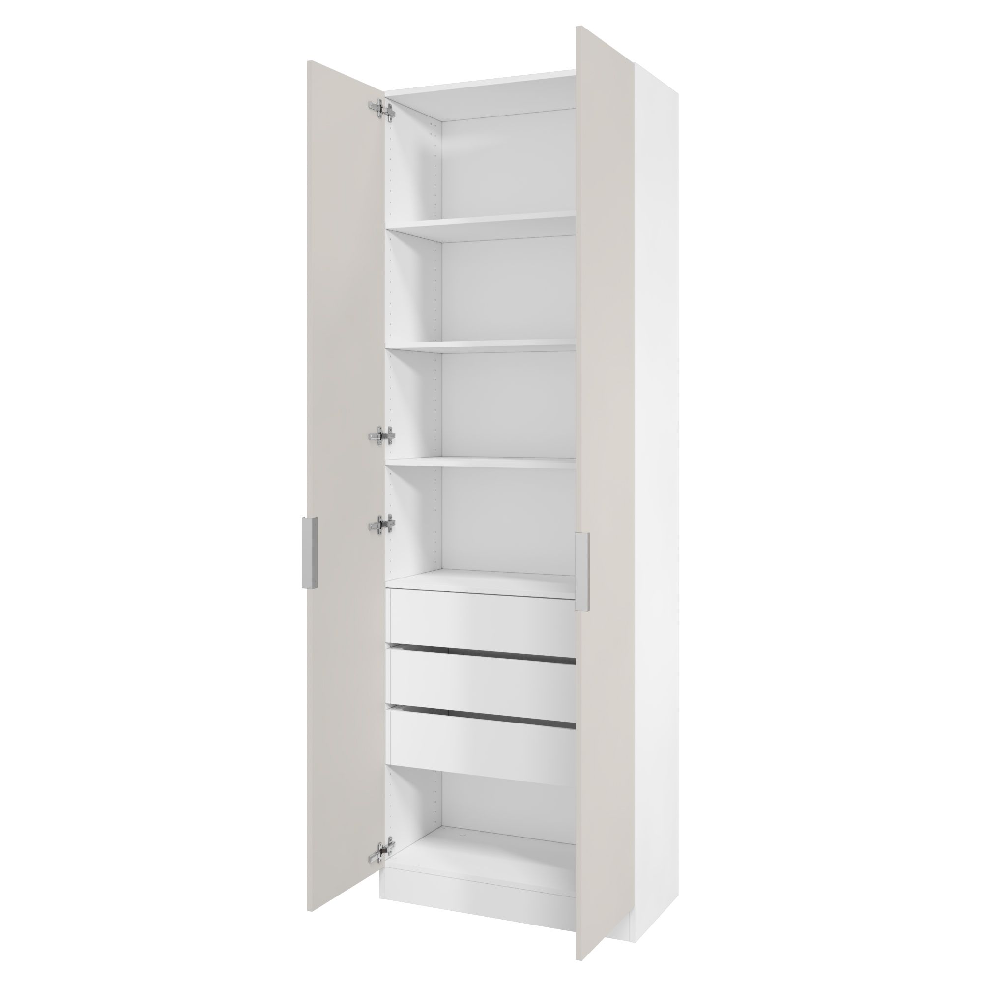 В комплект шкафа включены крепеж для сборки, петли для навешивания распашной двери, ручка, функциональное наполнение.