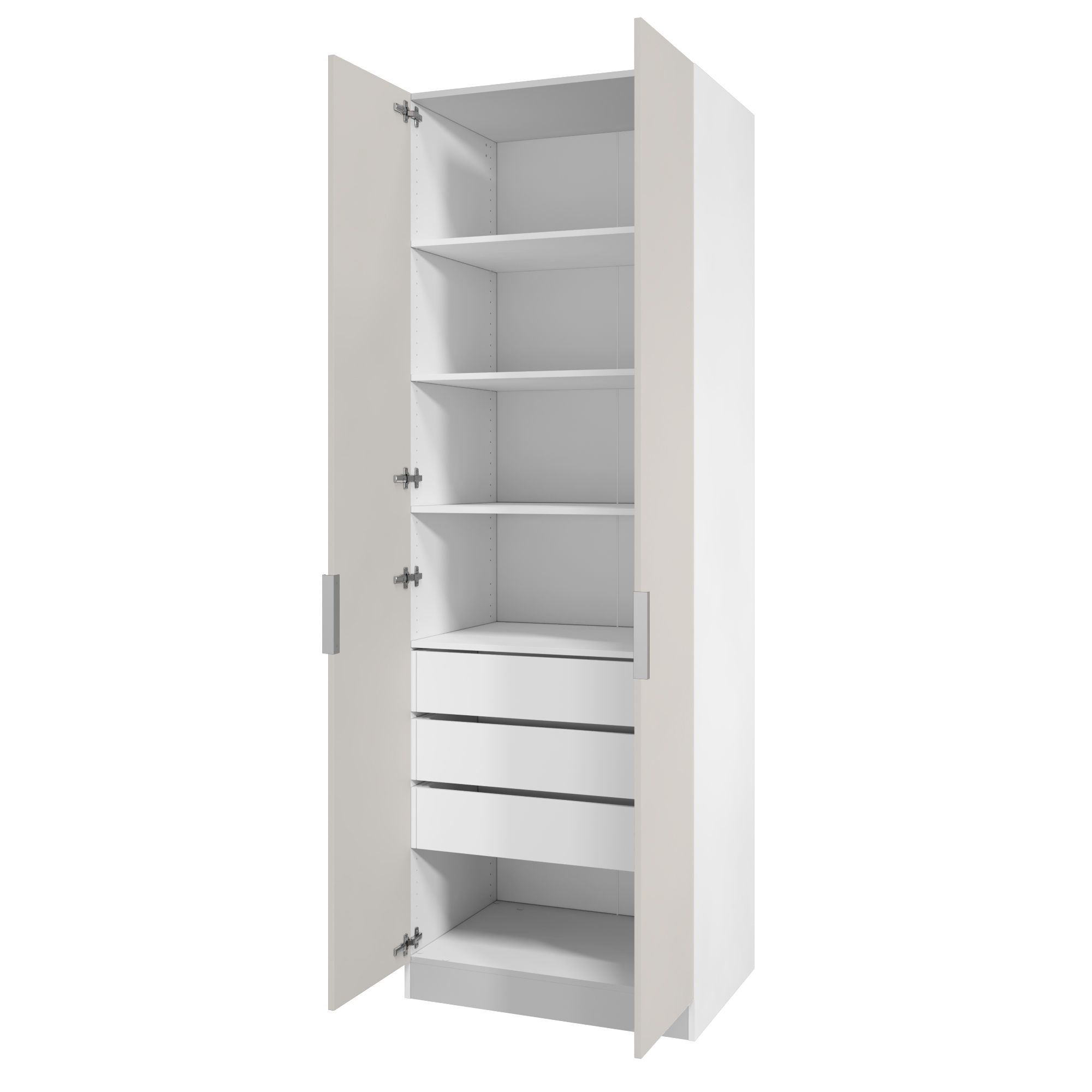 В комплект шкафа включены крепеж для сборки, петли для навешивания распашной двери, ручка, функциональное наполнение.