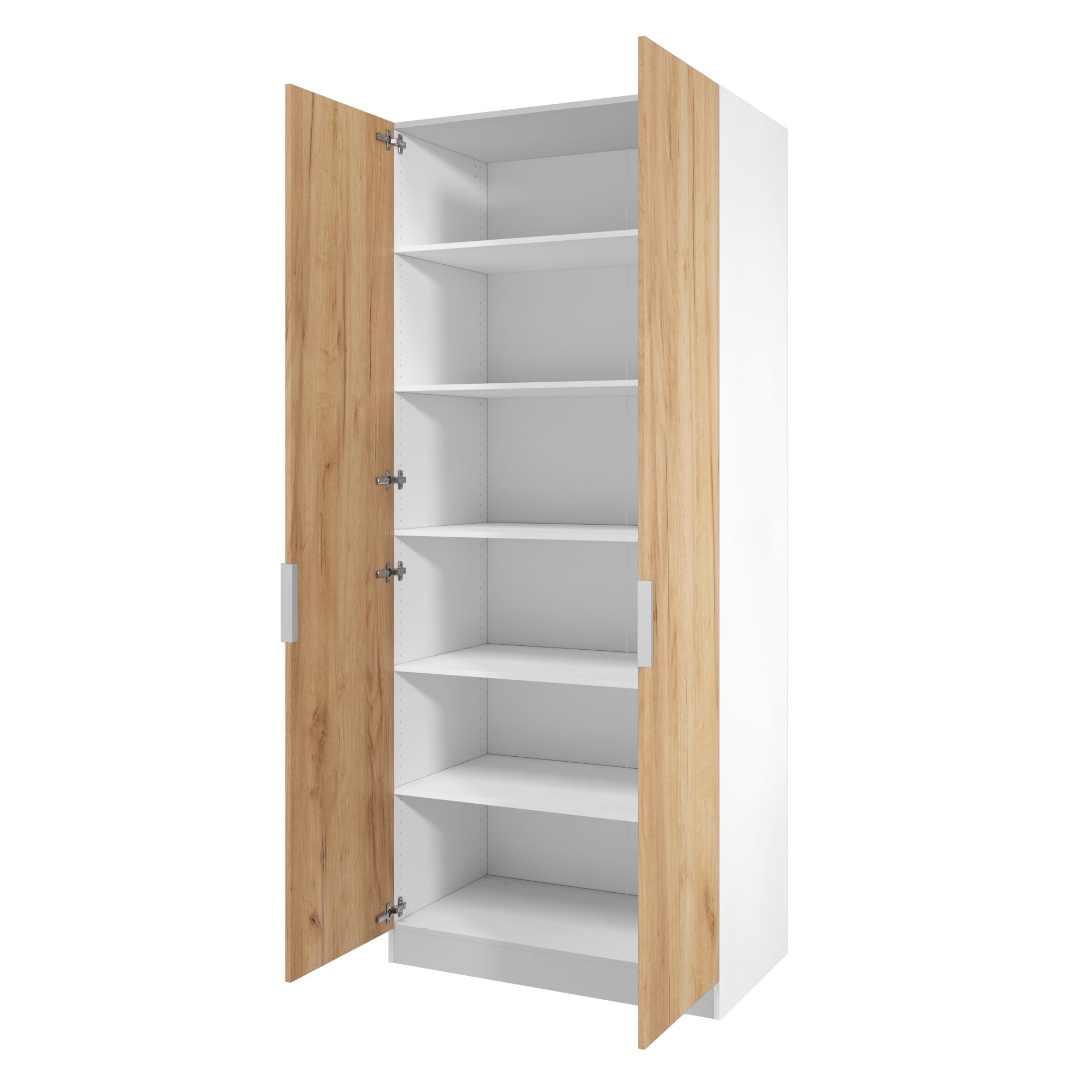 В комплект шкафа включены крепеж для сборки, петли для навешивания распашной двери, ручка, функциональное наполнение.
