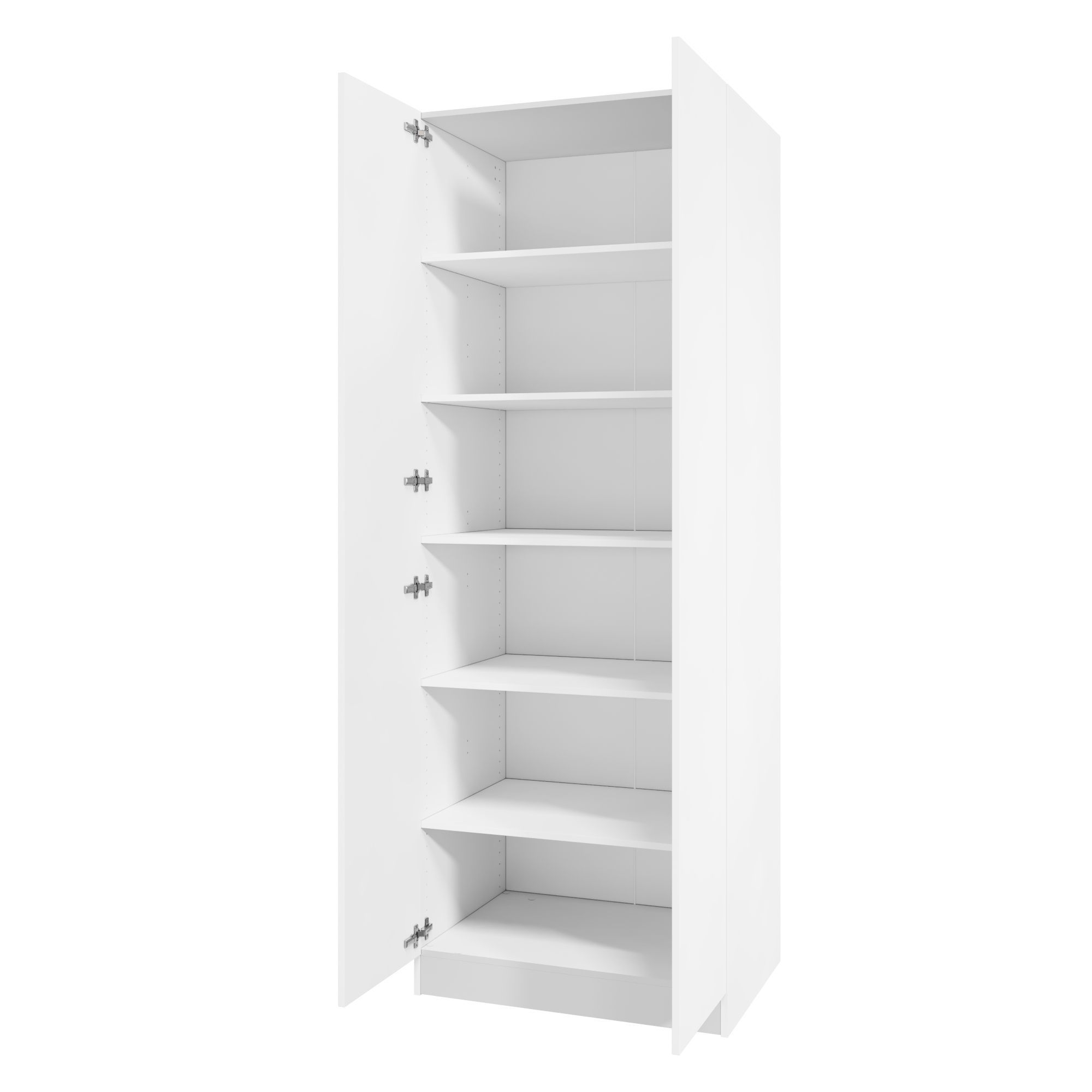 Дверь изготовлена из ЛДСП Kronospan класса эмиссии Е1 (разрешено для детских и медицинских учреждений) толщиной 16 мм. Ламинированное покрытие в декоре "Белый перламутр" износостойкое и легкое в уходе. Торцы герметизированы ПВХ кромкой в цвет.