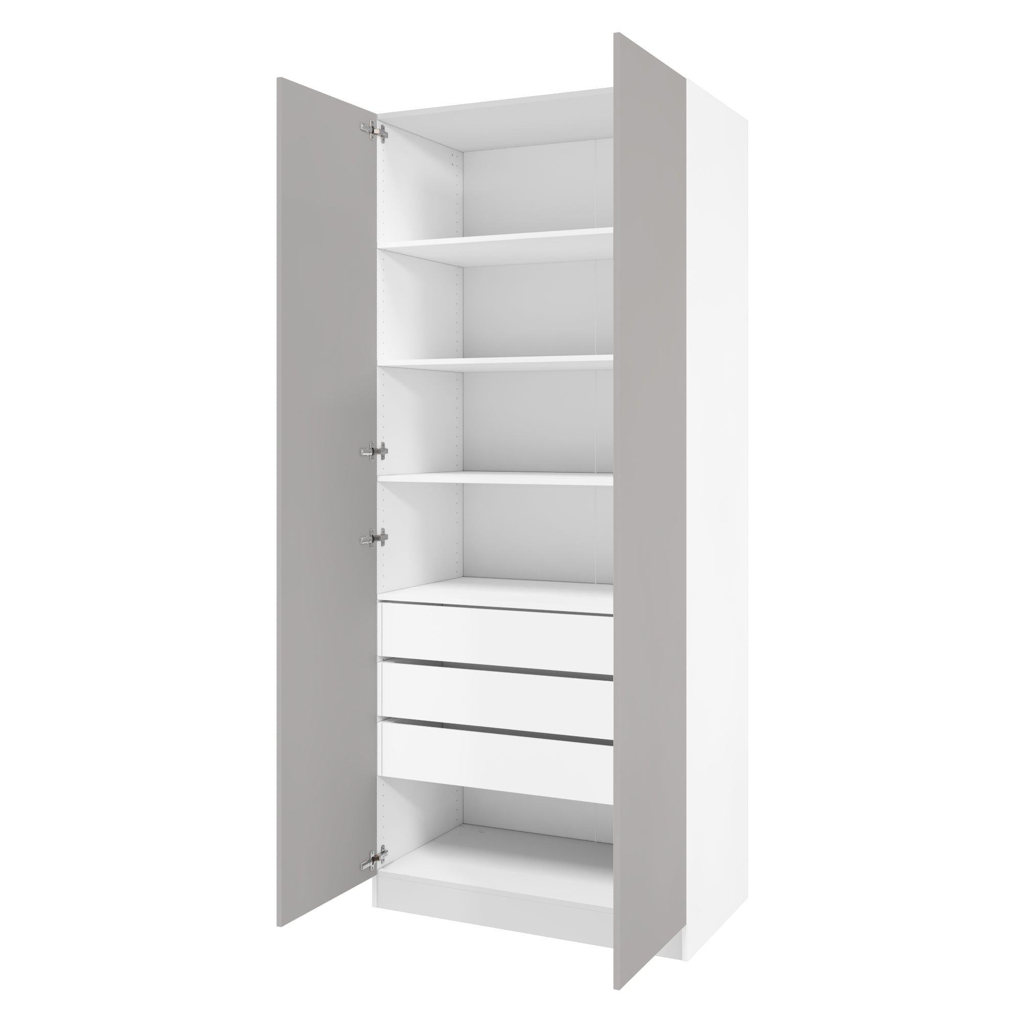 Дверь изготовлена из ЛДСП Kronospan класса эмиссии Е1 (разрешено для детских и медицинских учреждений) толщиной 16 мм. Ламинированное покрытие в декоре "Белый перламутр" износостойкое и легкое в уходе. Торцы герметизированы ПВХ кромкой в цвет.