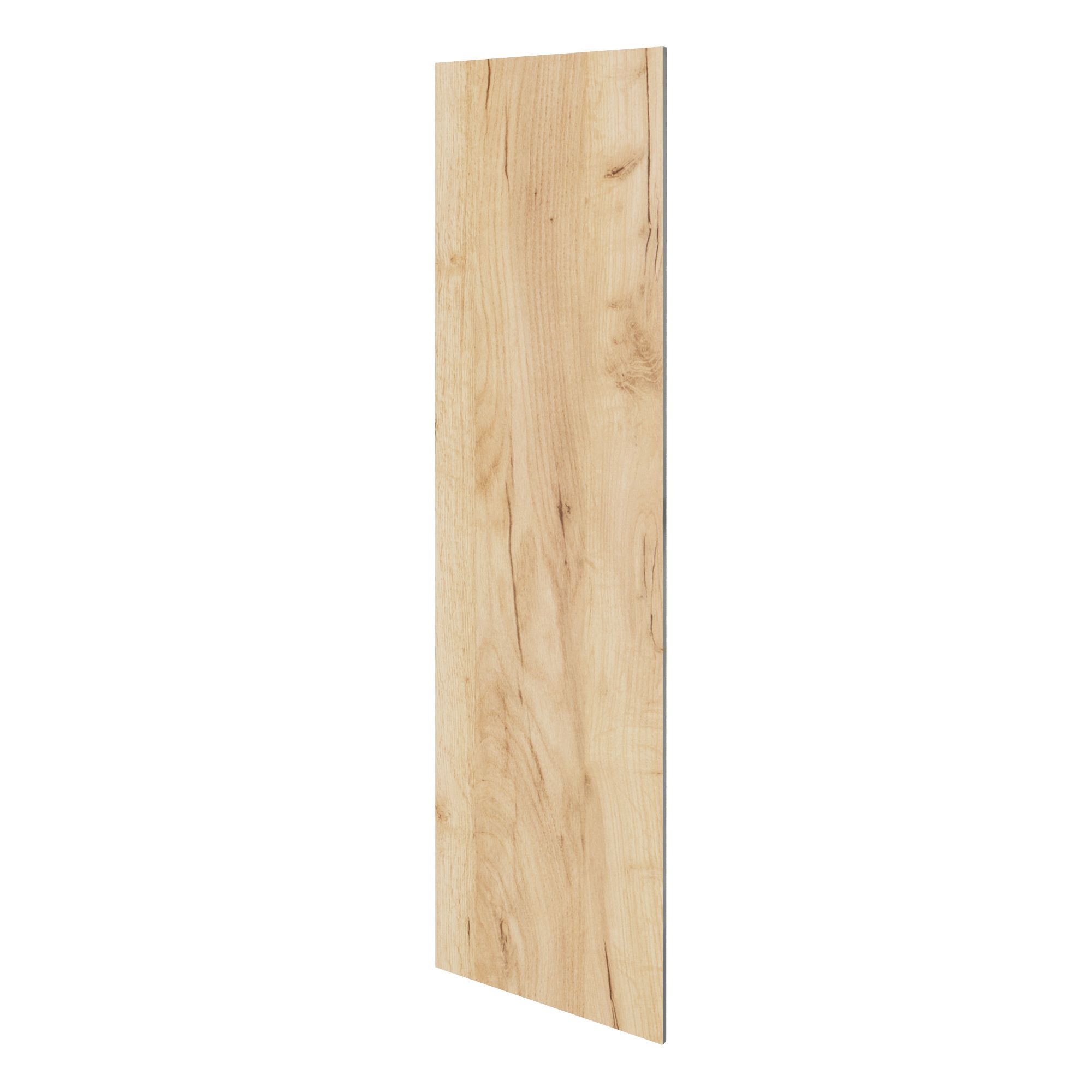 Дверь изготовлена из ЛДСП Kronospan класса эмиссии Е1 (разрешено для детских и медицинских учреждений) толщиной 16 мм. Ламинированное покрытие в декоре "Дуб золотой" износостойкое и легкое в уходе. Торцы герметизированы ПВХ кромкой в цвет.