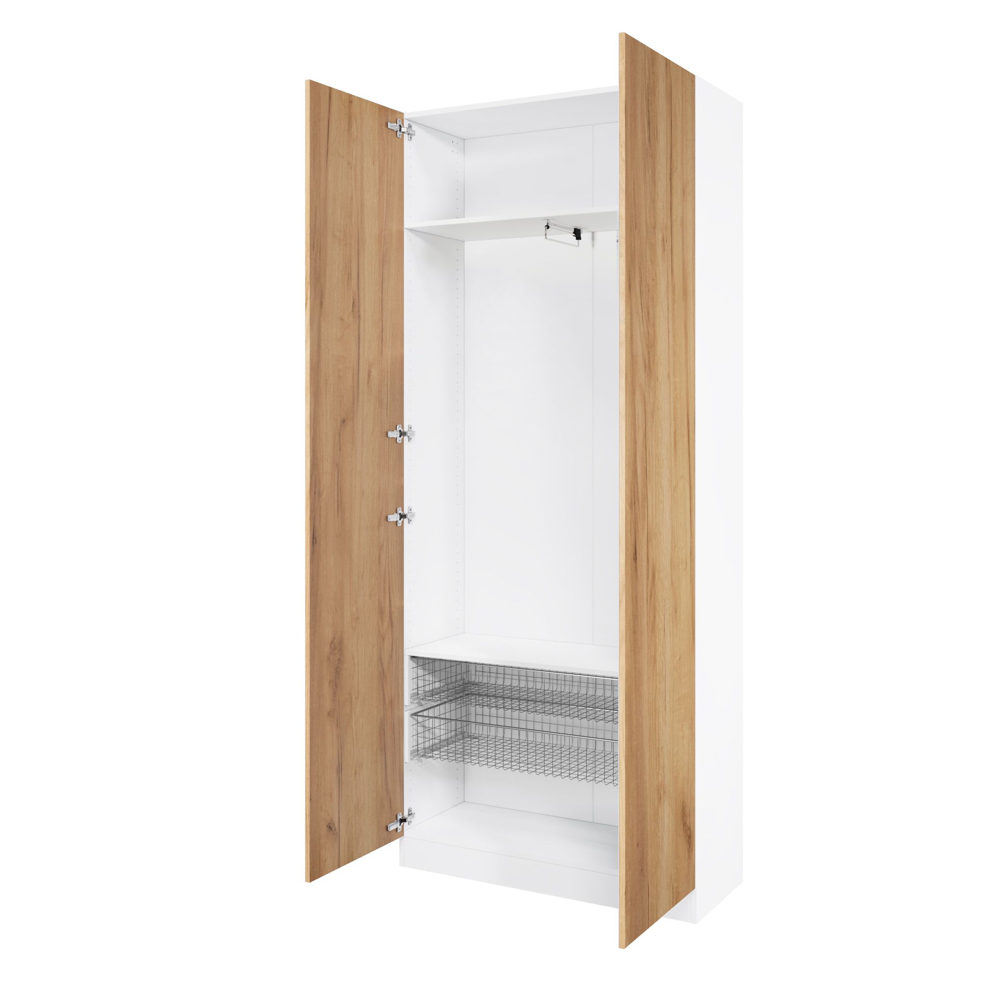 Дверь изготовлена из ЛДСП Kronospan класса эмиссии Е1 (разрешено для детских и медицинских учреждений) толщиной 16 мм. Ламинированное покрытие в декоре "Дуб золотой" износостойкое и легкое в уходе. Торцы герметизированы ПВХ кромкой в цвет.