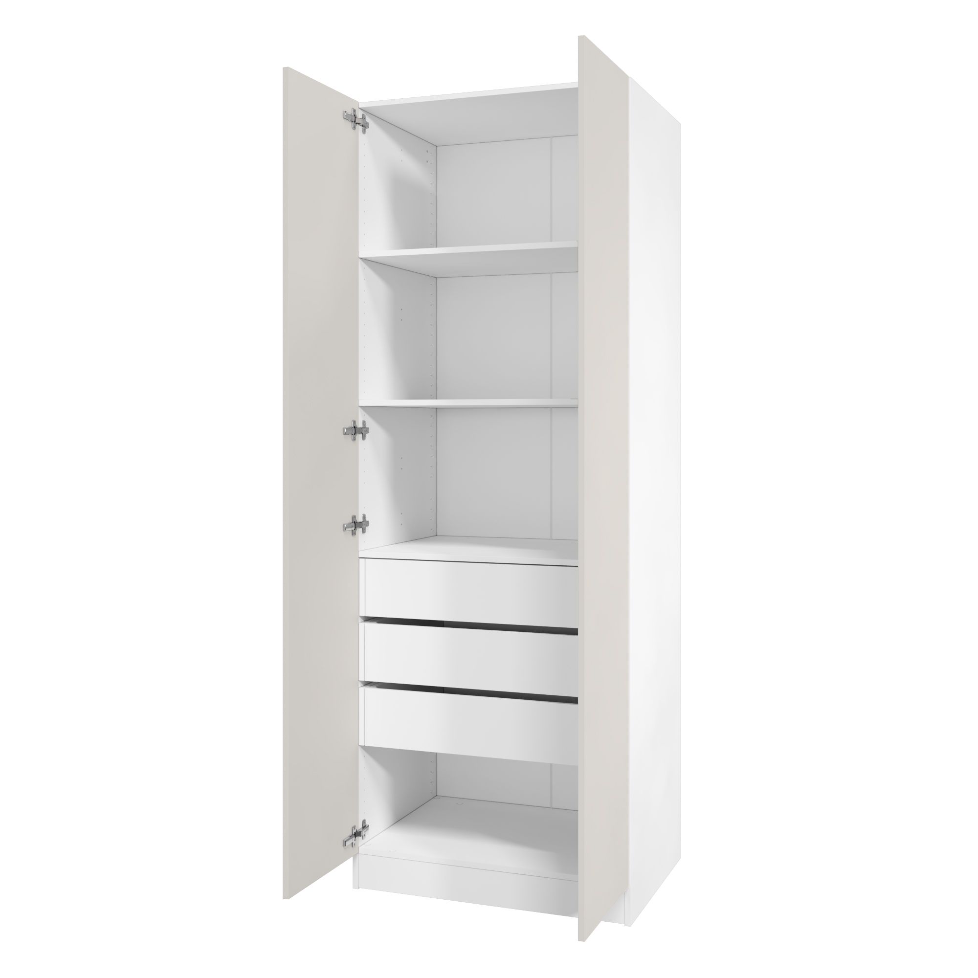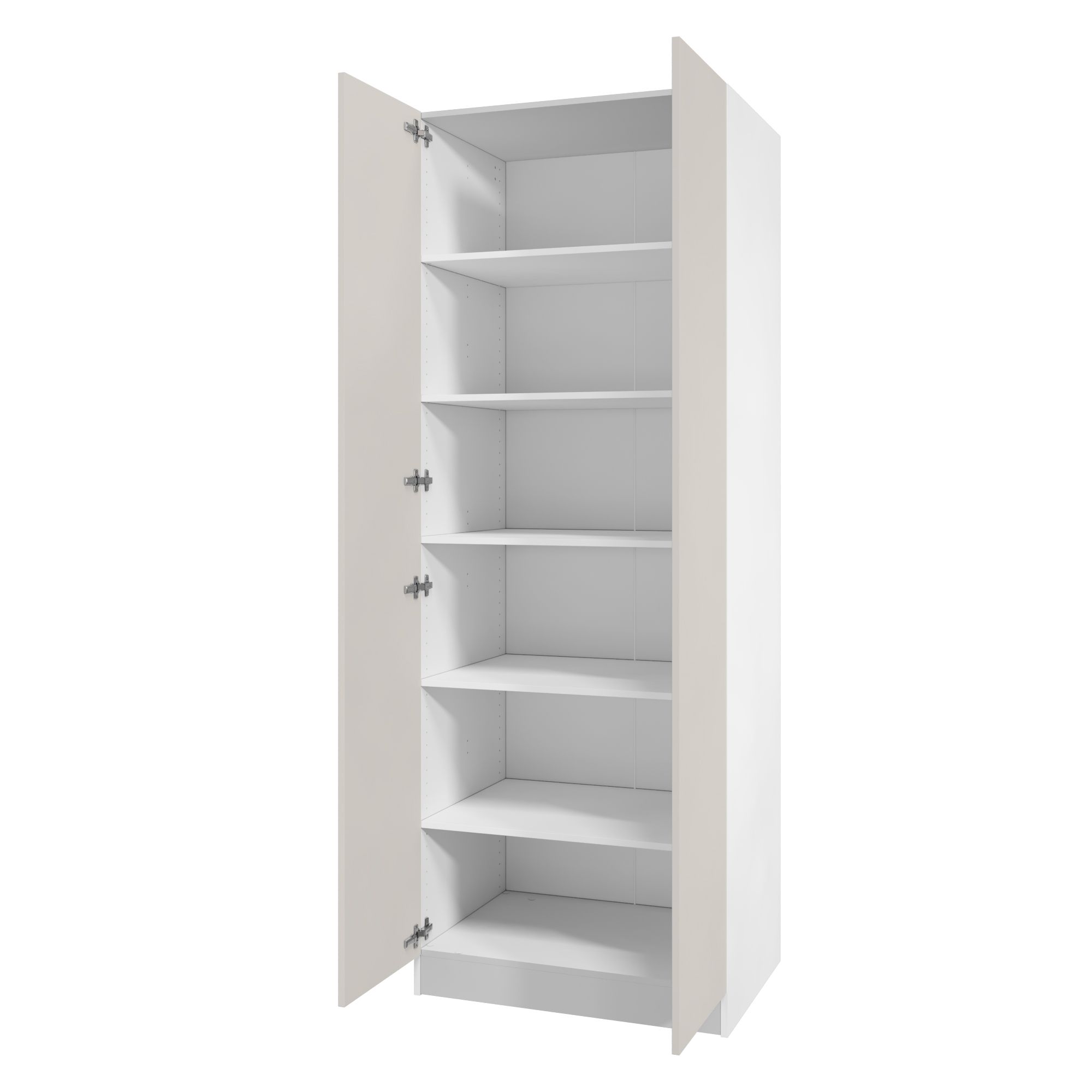 Дверь изготовлена из ЛДСП Kronospan класса эмиссии Е1 (разрешено для детских и медицинских учреждений) толщиной 16 мм. Ламинированное покрытие в декоре "Кашемир" износостойкое и легкое в уходе. Торцы герметизированы ПВХ кромкой в цвет.